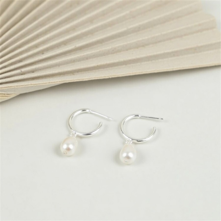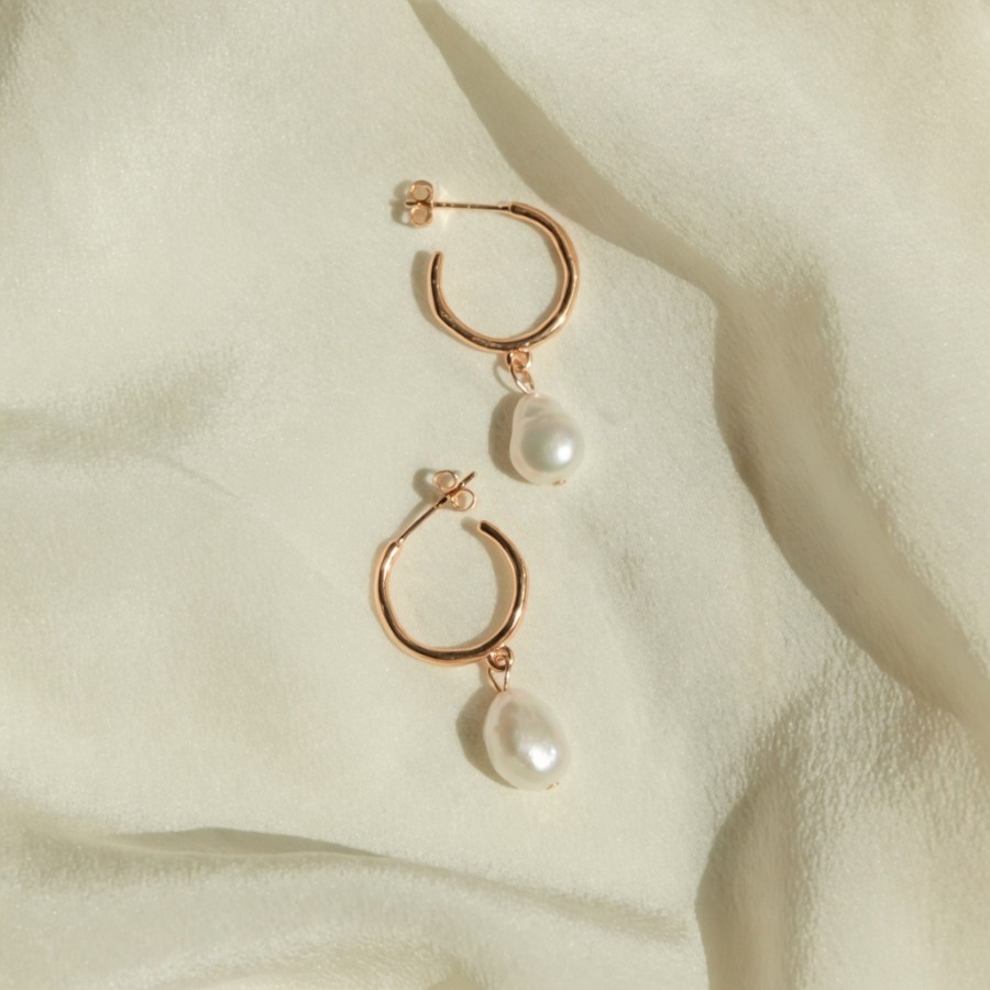 Natural freshwater pearl teardrop earrings, available in gold, silver, and rose gold.