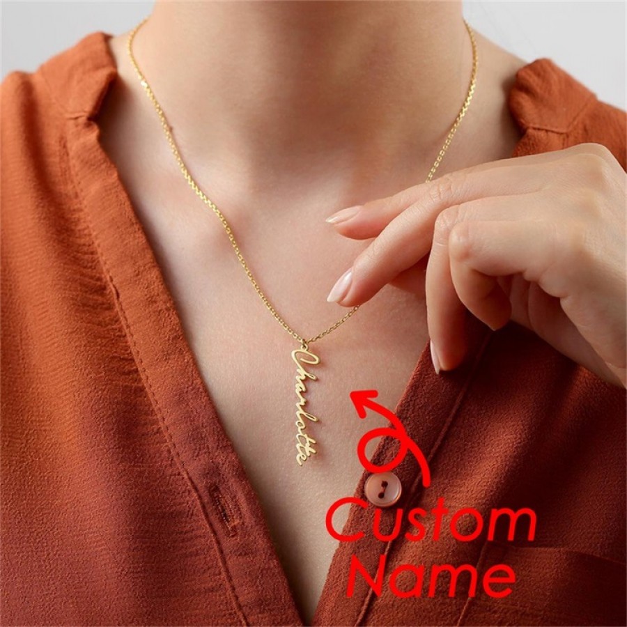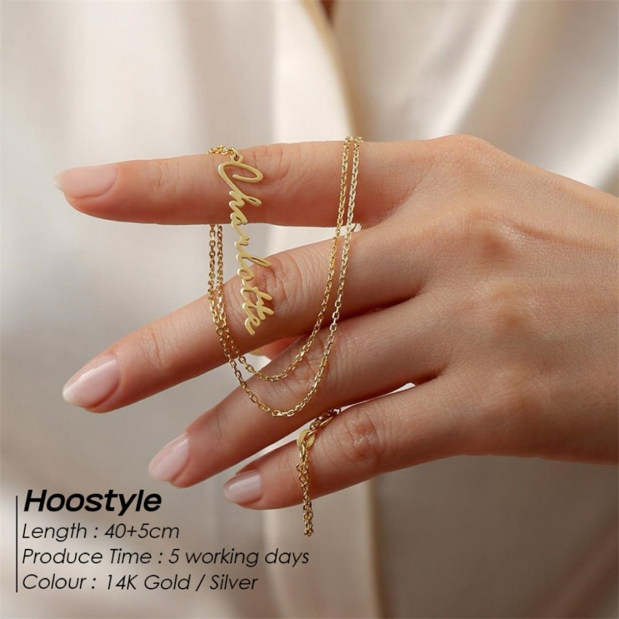 This elegant personalized name necklace lets you engrave any name or word in a delicate handwritten script. Available in 14K gold and silver finishes, it features an adjustable chain for a perfect fit, making it a timeless, meaningful piece for everyday wear or gifting.(Up to seven letters can be selected)