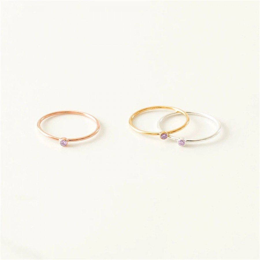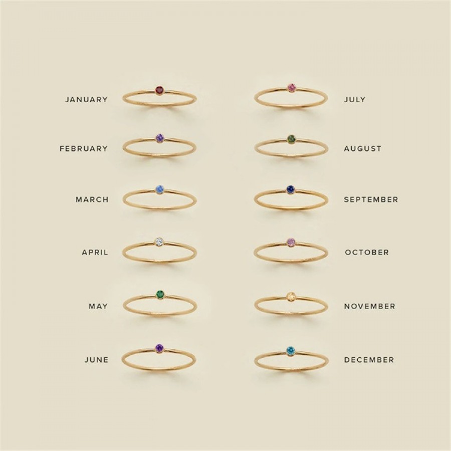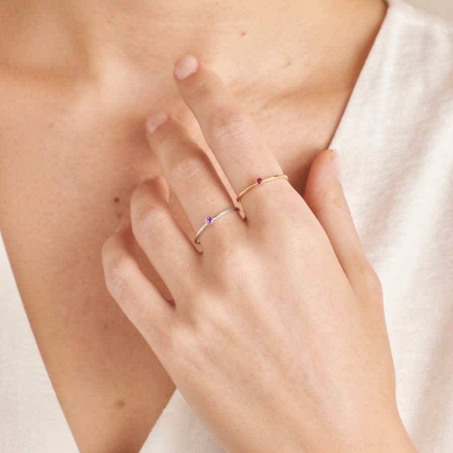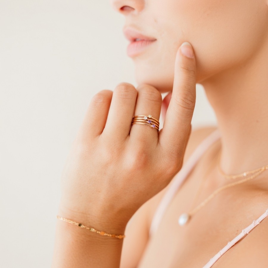 Elevate your ring stack with this delicate personalized birthstone stacking ring. Crafted with a thin, polished band available in three timeless tones—gold, silver, and rose gold—it features a single tiny gemstone representing your birth month, with 12 vibrant hues to match every month of the year. The minimalist design makes it perfect for stacking with other rings or wearing alone for a subtle, sentimental touch. Hypoallergenic, durable, and versatile, this birthstone ring is a thoughtful gift for yourself or a loved one, celebrating the unique beauty of their birth month.