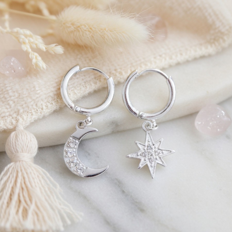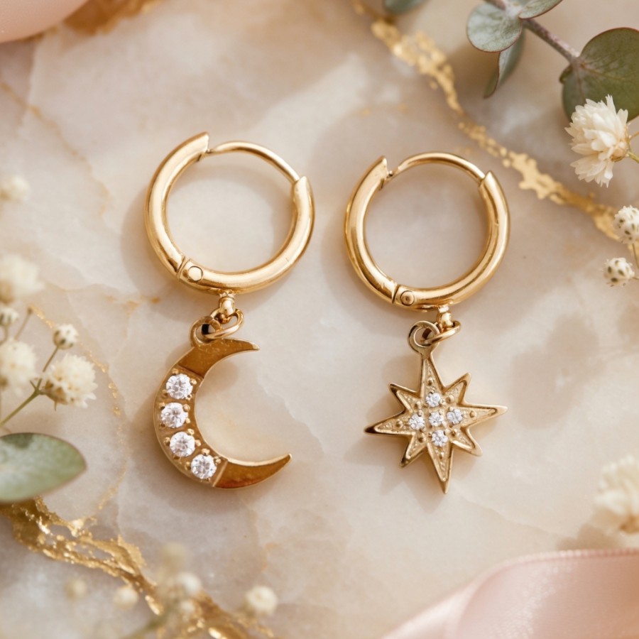Moon Star Asymmetrical Huggie Hoop Earrings